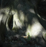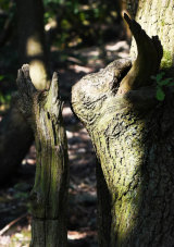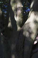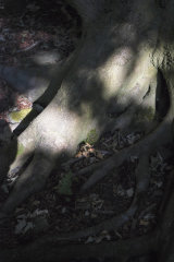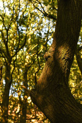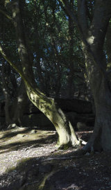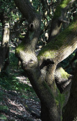The textures and shapes, colour and light of these ancient trees draw me in. As though one of their long, sculptural, bowed-low branches has wrapped round me and sprung me forward on to its uneven, leafy carpet.
